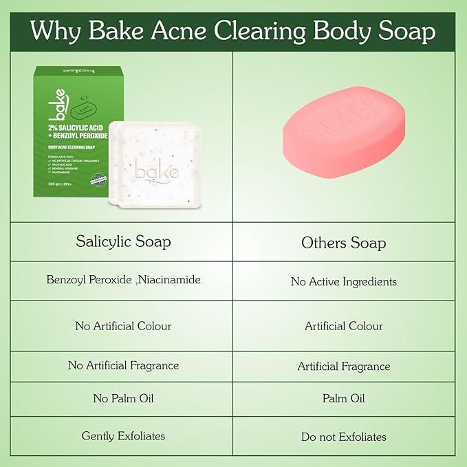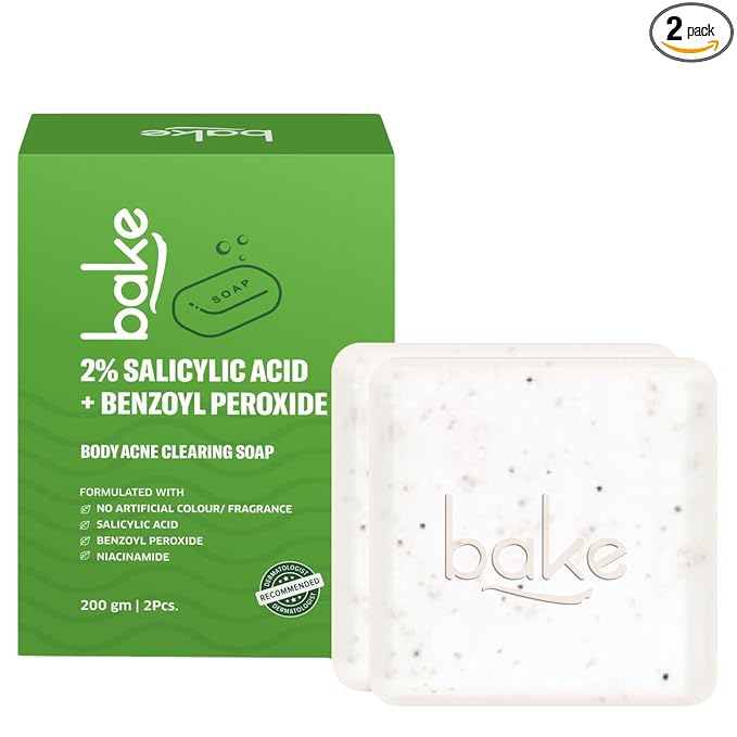 BAKE 2% Salicylic Acid Soap (2 pcs) Scrub Treatment with Niacinamide for Body & Back Acne, Reduces Strawberry Legs | Fades Dark Spots | Non Drying Formula | Soap For Men & Women | 100g x 2 (100 g (Pack of 2))