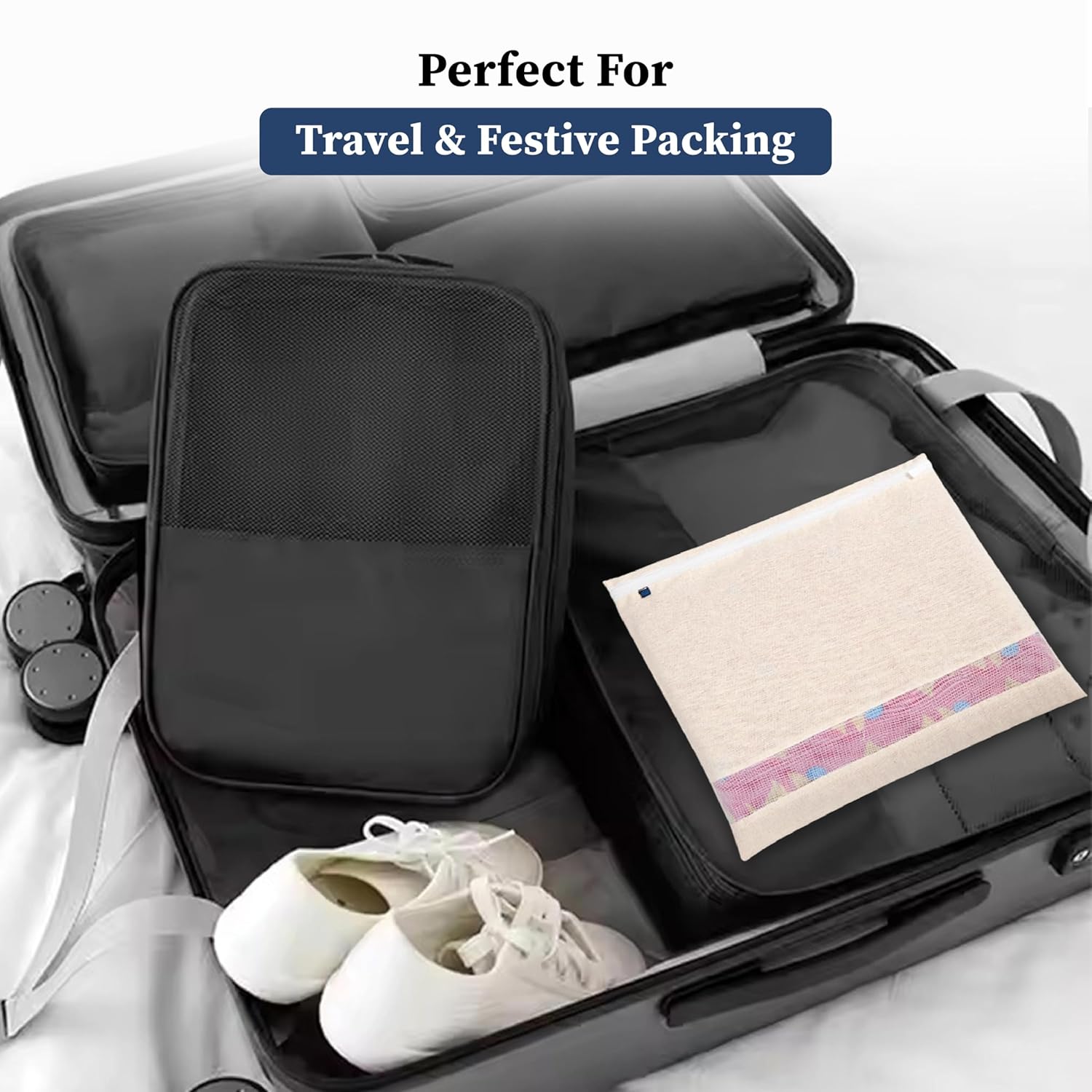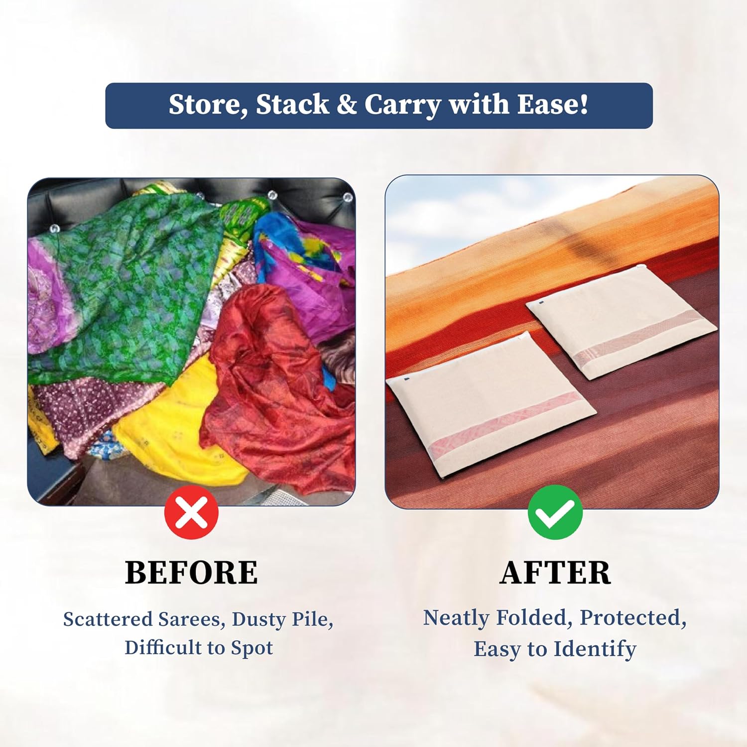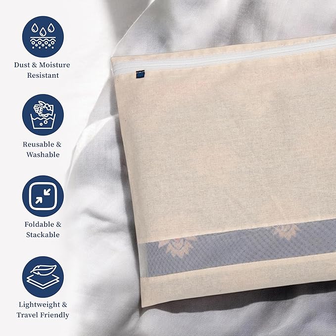 The Homestrap Cotton Saree Cover is a thoughtfully designed storage essential for keeping your ethnic wear neatly organized and protected. Made from premium cotton, this lightweight, breathable cover ensures that your sarees and delicate garments remain dust-free and fresh. A mesh window at the bottom lets you easily identify the item inside—without opening. For added durability, we’ve included a double-layer mesh panel, making this saree cover ideal for long-term and frequent use. With a design that comfortably fits most standard sarees, this cover is not just limited to saree storage. It’s also perfect for suits, dupattas, kurtas, or as a compact travel organizer . The smooth zipper and durable stitching promise a secure and convenient storage experience. Whether you’re organizing your wardrobe or packing for a trip, Homestrap’s saree cover is a smart, space-saving solution you can count on